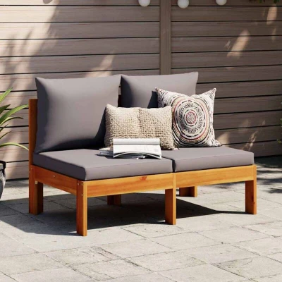 VidaXLRelax and enjoy the outdoors in this comfortable 2-seater wooden garden sofa! Solid acacia wood: Solid acacia wood is a beautiful natural material. Acacia wood is a tropical hardwood, which is dense, sturdy, and durable.Comfortable seat experience: This outdoor furniture, complete with thickly padded cushions, offers a comfortable seating experience.Removable and washable cover: The seat cushion and back cushion feature removable covers for easy washing and maintenance.Modular design: This outdoor furniture has a modular design, making it completely flexible and easy to move around, so you can create a customised outdoor furniture arrangement. Good to know:To make sure your outdoor furniture stays beautiful, we recommend protecting it with a waterproof cover.The cushion covers are hand washable not machine.