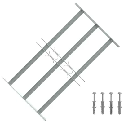 vidaXL Adjustable Security Grille with 3 Crossbars Galvanised Steel Window Protection, Extendable 500 650mm, Easy Install