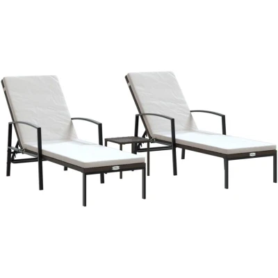 vidaXL Adjustable Sun Loungers with Table in Poly Rattan and Powder Coated Steel Frame, Cream White Cushion included, Suitable for Patio, Garden, Balcony