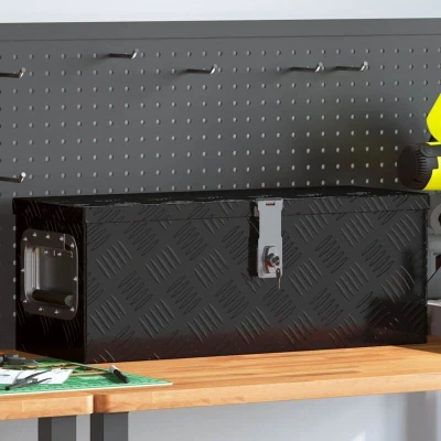 vidaXL Aluminium Storage Box Durable and Rust Resistant Construction, Secure Lock Key System, Spacious Interior, Compact Portable Design, Black
