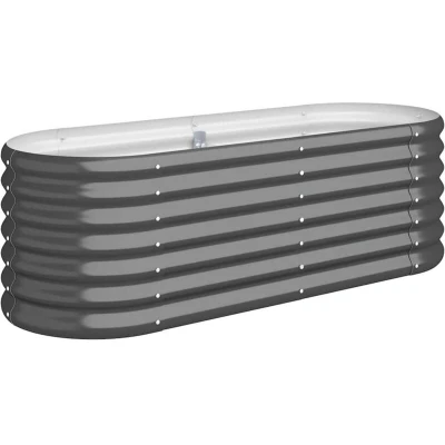 vidaXL Anthracite Oval Raised Garden Bed Powder Coated Steel Planter 114x40x36 cm for Outdoors, Patios, Balconies