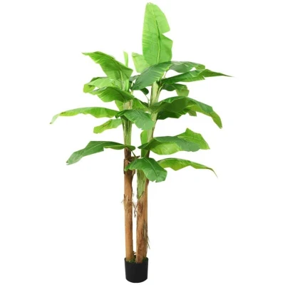 General description Add some greenery to your interior with this lifelike artificial banana tree. Standing at a height of 290-300 cm, depending on the opening degree of the leaves, it is an excellent choice for enhancing your home or office decor. The plant features intricately detailed leaves that provide a full, realistic appearance and will never wither, making it ideal for those who want to enjoy the beauty of plants without the maintenance. The leaves exhibit slight color variations for an authentic look and feel, allowing you to experience the presence of nature indoors. Technical specifications Colour: Green Material: Solid wood, plastic Height: 290-300 cm Number of leaves: 24 Includes a black pot Plant type: Banana tree Assembly required: Yes Other information