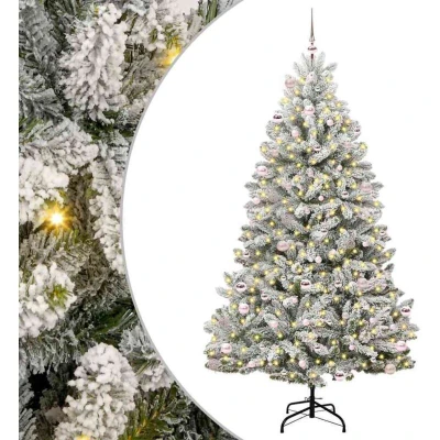 vidaXL Artificial Christmas Tree Green and White 240 cm PVC Metal