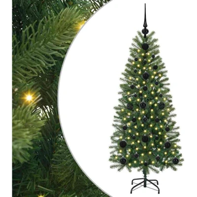 ManoManoGeneral description This elegant Artificial Christmas Tree blends modern style with traditional charm, featuring a sleek cone shape that enhances its visual appeal. Designed to be adorned with warm white decorative LED lights, it brings festive charm to any room or terrace, creating a cozy ambiance for the Christmas season. With a theme dedicated to Christmas, this tree is suitable for various holiday settings, providing a delightful focal point for indoor or outdoor decor. Its clean lines and minimal ornamentation complement contemporary living spaces while offering a functional holiday solution for families, event hosts, and festive enthusiasts. Technical specifications Colour: Green Material: PE and PVC Tree height: 120 cm Bottom diameter: 75 cm Stand size: 30 cm Number of PVC tips: 120 Number of baubles: 61 Lights type: Decorative string lights Lights color: Warm white Lights length: 3000 cm Number of LEDs: 150 Distance between LEDs: 10 cm LED flash modes: 8 Power source: USB