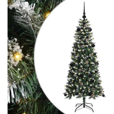 ManoManoGeneral description This contemporary artificial Christmas tree offers an elegant festive touch to any space. Blending modern design with holiday tradition, it serves as an ideal centerpiece for both indoor and outdoor festivities, emanating a welcoming glow. Technical specifications Colour: Green Material: PVC, plastic, and steel Tree height: 150 cm Bottom diameter: 66 cm Stand size: 35 x 35 cm Number of PVC tips: 440 Number of pine cones: 23 Number of baubles: 61 Lights type: LED strip lights Lights color: Warm white Lights length: 150 cm Number of LEDs: 150 Distance between LEDs: 10 cm LED flash modes: 8 Power source: USB Voltage: 5 V Wattage: 5 W Indoor / outdoor: Indoor and sheltered outdoor use Assembly required: Yes Compatibility and accessories Delivery contains: 1 x Artificial Christmas tree 1 x Foldable stand 1 x LED string light 1 x Peak 20 x 3 cm ball 21 x 4 cm ball 20 x 6 cm ball Installation Simple assembly requiring just a screwdriver. Hinged branches for easy setup.