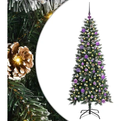 ManoManoGeneral description This contemporary artificial Christmas tree offers an elegant festive touch to any space. Blending modern design with holiday tradition, it serves as an ideal centerpiece for both indoor and outdoor festivities, emanating a welcoming glow. Technical specifications Colour: Green Material: PVC, plastic, and steel Tree height: 150 cm Bottom diameter: 66 cm Stand size: 35 x 35 cm Number of PVC tips: 440 Number of pine cones: 23 Number of baubles: 61 Lights type: LED strip lights Lights color: Warm white Lights length: 150 cm Number of LEDs: 150 Distance between LEDs: 10 cm LED flash modes: 8 Power source: USB Voltage: 5 V Wattage: 5 W Indoor / outdoor: Indoor and sheltered outdoor use Assembly required: Yes Delivery contains: 1 x Artificial Christmas tree, 1 x Foldable stand, 1 x LED string light, 1 x Peak, 20 x 3 cm ball, 21 x 4 cm ball, 20 x 6 cm ball EAN: 8721288987747 SKU: 3395814 Brand: vidaXL Installation Simple assembly requiring just a screwdriver. Hinged