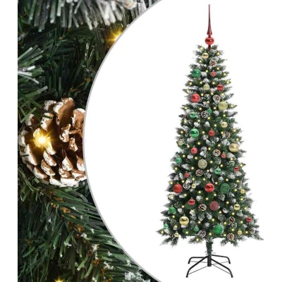 ManoManoGeneral description This contemporary artificial Christmas tree offers an elegant festive touch to any space. Blending modern design with holiday tradition, it serves as an ideal centerpiece for both indoor and outdoor festivities, emanating a welcoming glow. Technical specifications Colour: Green Material: PVC, plastic, and steel Tree height: 150 cm Bottom diameter: 66 cm Stand size: 35 x 35 cm Number of PVC tips: 440 Number of pine cones: 23 Number of baubles: 61 Lights type: LED strip lights Lights color: Warm white Lights length: 150 cm Number of LEDs: 150 Distance between LEDs: 10 cm LED flash modes: 8 Power source: USB Voltage: 5 V Wattage: 5 W Indoor / outdoor: Indoor and sheltered outdoor use Assembly required: Yes Compatibility and accessories Delivery contains: 1 x Artificial Christmas tree 1 x Foldable stand 1 x LED string light 1 x Peak 20 x 3 cm ball 21 x 4 cm ball 20 x 6 cm ball Installation Simple assembly requiring just a screwdriver. Hinged branches for easy setup.
