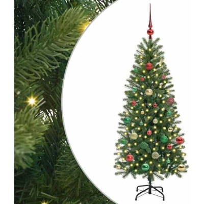 ManoManoGeneral description This elegant Artificial Christmas Tree blends modern style with traditional charm, featuring a sleek cone shape that enhances its visual appeal. Designed to be adorned with warm white decorative LED lights, it brings festive charm to any room or terrace, creating a cozy ambiance for the Christmas season. With a theme dedicated to Christmas, this tree is suitable for various holiday settings, providing a delightful focal point for indoor or outdoor decor. Its clean lines and minimal ornamentation complement contemporary living spaces while offering a functional holiday solution for families, event hosts, and festive enthusiasts. Technical specifications Colour: Green Material: PE and PVC Tree height: 150 cm Bottom diameter: 75 cm Stand size: 35 cm Durable with lifelike tips Hinged construction for easy setup Foldable stand Number of PVC tips: 150 Number of baubles: 61 Lights type: Decorative string lights Lights color: Warm white Lights length: 3000 cm Number of