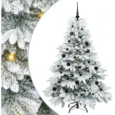 ManoManoGeneral description This beautiful cone-shaped decoration brings a modern touch to your holiday celebrations. Crafted from high-quality PVC and PE, this Christmas decor is perfect for adding an elegant glow to your living room, garden, or terrace with its warm white LED lights. Its contemporary style and minimal ornamentation make it a charming addition to any seasonal setting, offering an inviting glow that elevates the ambiance of any space. Technical specifications Colour: Green Material: PE and PVC Tree height: 150 cm Bottom diameter: 101 cm Stand size: 35 cm Number of PE tips: 60 Number of PVC tips: 536 Number of baubles: 61 Lights type: Decorative string lights Lights color: Warm white Lights length: 3000 cm Number of LEDs: 150 Distance between LEDs: 10 cm LED flash modes: 8 Power source: USB Voltage: 5 V Batteries Included: No Indoor / outdoor: Indoor and sheltered outdoor use Assembly required: Yes Delivery contains: 1 x Christmas tree, 1 x Stand, 1 x LED string light, 1 x