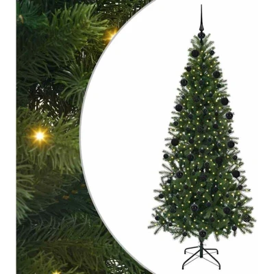 ManoManoGeneral description This elegant Artificial Christmas Tree blends modern style with traditional charm, featuring a sleek cone shape that enhances its visual appeal. Designed to be adorned with warm white decorative LED lights, it brings festive charm to any room or terrace, creating a cozy ambiance for the Christmas season. With a theme dedicated to Christmas, this tree is suitable for various holiday settings, providing a delightful focal point for indoor or outdoor decor. Its clean lines and minimal ornamentation complement contemporary living spaces while offering a functional holiday solution for families, event hosts, and festive enthusiasts. Technical specifications Colour: Green Material: PE and PVC Tree height: 210 cm Bottom diameter: 105 cm Stand size: 45 cm Number of PVC tips: 210 Number of baubles: 120 Lights type: Decorative string lights Lights color: Warm white Lights length: 3000 cm Number of LEDs: 300 Distance between LEDs: 10 cm LED flash modes: 8 Power source: USB