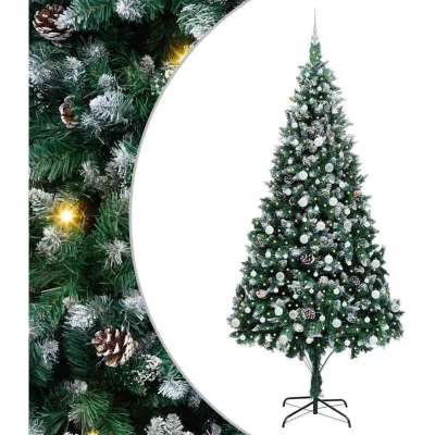 ManoManoGeneral description The PVC Artificial Christmas Tree combines the charm of a traditional holiday centerpiece with the convenience of modern LED lighting features. Designed for both indoor and sheltered outdoor spaces, its cone-shaped structure, decorated with pine cones and tipped with white snow, creates a magical holiday atmosphere in your living room, garden, or terrace. This beautiful seasonal piece invites the spirit of Christmas into any setting. Technical specifications Colour: Green Material: PVC, steel, and plastic Tree height: 240 cm Bottom diameter: 130 cm Number of PVC tips: 2021 Number of LEDs: 300 LED color: Warm white LED flash modes: 8 Power source: USB (5V) Batteries Included: No Indoor / outdoor: Indoor and sheltered outdoor use Assembly required: Yes Compatibility and accessories Delivery contains: 1 x Christmas tree 1 x Stand 1 x LED string light 1 x Peak 40 x 6 cm ball 40 x 4 cm ball 40 x 3 cm ball Usage Equipped with LED strip lights that offer flexible