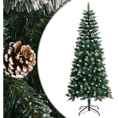 This lovely and lifelike artificial Christmas tree with distinctive tips will become the focal point of your holiday decorations. Hinged construction: This luxury tree has a hinged construction, so the branches will automatically fold down in the right angle. This will make it much easier to put up the tree in the perfect shape, and will save you time as well.Bushy Christmas tree: The Christmas tree is designed with a lot of beautiful PVC tips, giving the tree a beautiful realistic look along with a bushy appearance.Sturdy stand: The artificial tree is made of a sturdy steel stand, which provides the tree with optimal stability.Beautiful decoration: The Christmas tree even comes with cones on it, offering a wonderful natural effect. It is decorated with artificial white snow and glitter to create a unique wintery feel.Lasting durability: The Xmas tree can be used again every year, making it a very economical choice compared to a real tree. Note:Each product comes with an assembly manual in the box for easy assembly.