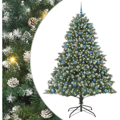 ManoManoGeneral description This Artificial Christmas Tree perfectly blends modern style with festive charm, bringing simplicity and functionality right into your home or garden. Whether positioned in a cozy living room or on a scenic terrace, its cone shape and minimalist design seamlessly adapt to various settings, offering a timeless aesthetic. From holiday celebrations to year-round decor, the tree is crafted to elevate ambiance and warmth with its feature-rich components. Technical specifications Colour: Green Material: PVC, plastic, and steel Tree height: 240 cm Bottom diameter: 160 cm Stand size: 50 x 50 cm Number of PVC tips: 2180 Number of pine cones: 48 Number of baubles: 120 Lights type: LED strip lights Lights color: Warm white Lights length: 300 cm Number of LEDs: 300 Distance between LEDs: 10 cm LED flash modes: 8 Power source: USB Batteries Included: No Voltage: 5 V Wattage: 5 W Indoor / outdoor: Indoor and sheltered outdoor use Assembly required: Yes Included Components 1 x