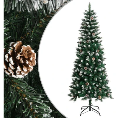This lovely and lifelike artificial Christmas tree with distinctive tips will become the focal point of your holiday decorations. Hinged construction: This luxury tree has a hinged construction, so the branches will automatically fold down in the right angle. This will make it much easier to put up the tree in the perfect shape, and will save you time as well.Bushy Christmas tree: The Christmas tree is designed with a lot of beautiful PVC tips, giving the tree a beautiful realistic look along with a bushy appearance.Sturdy stand: The artificial tree is made of a sturdy steel stand, which provides the tree with optimal stability.Beautiful decoration: The Christmas tree even comes with cones on it, offering a wonderful natural effect. It is decorated with artificial white snow and glitter to create a unique wintery feel.Lasting durability: The Xmas tree can be used again every year, making it a very economical choice compared to a real tree. Note:Each product comes with an assembly manual in the box for easy assembly.