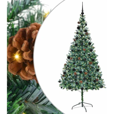 ManoManoGeneral description This unique and contemporary decorative piece features a modern cone shape, crafted primarily for both indoor and outdoor use. The design aligns perfectly with the Christmas season, where its textured PVC finish and elegant green hue contribute to a festive atmosphere, whether in your living room or on the garden terrace. This decorative piece flaunts a cone-shaped structure that elevates any setting with its intricate textures and striking elegance. Technical specifications Colour: Green Material: PVC and steel Tree height: 210 cm Bottom diameter: 105 cm Stand size: 45 cm Number of pine cones: 28 Lights type: Decorative string lights Lights color: Warm white Number of LEDs: 300 Distance between LEDs: 10 cm LED flash modes: 8 Power source: USB (not included) Batteries Included: No Indoor / outdoor: Indoor and sheltered outdoor use Assembly required: Yes EAN: 8721288996848 SKU: 3396724 Brand: vidaXL Installation Simple assembly required, can be completed by two