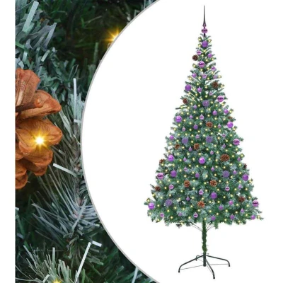 ManoManoGeneral description This unique and contemporary decorative piece features a modern cone shape, crafted primarily for both indoor and outdoor use. The design aligns perfectly with the Christmas season, where its textured PVC finish and elegant green hue contribute to a festive atmosphere, whether in your living room or on the garden terrace. Technical specifications Colour: Green Material: PVC and steel Tree height: 210 cm Bottom diameter: 105 cm Stand size: 45 cm Number of pine cones: 28 Lights type: Decorative string lights Lights color: Warm white Number of LEDs: 300 Distance between LEDs: 10 cm LED flash modes: 8 Power source: USB (not included) Batteries Included: No Indoor / outdoor: Indoor and sheltered outdoor use Assembly required: Yes EAN: 8721288996893 SKU: 3396729 Brand: vidaXL Installation Simple assembly required, can be completed by two people. Clear instructions are provided for easy setup. Usage Perfect for enhancing festive decor in both indoor and outdoor settings.