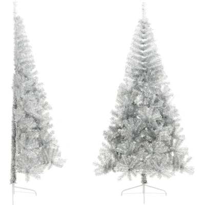 ManoManoGeneral description Create a magical holiday ambiance in your house with this artificial half Christmas tree! Designed with a bushy appearance and a realistic look, this tree is perfect for saving space while adding festive charm to your home. Its half-round design allows it to be placed against a wall, making it an eye-catching centerpiece for your Christmas decorations. Technical specifications Colour: Silver Material: PET, steel Tree height: 240 cm Maximum tree width: 125 cm Base diameter: 50 cm Number of branches: 1050 Design: Half-round Assembly required: Yes Delivery contains 1 x Christmas tree 1 x Stand Other information