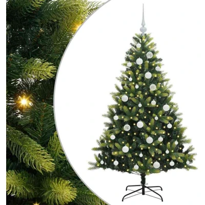 ManoManoGeneral description This Modern Artificial Hinged Christmas Tree embodies holiday warmth and elegance, designed to enhance your festive decor effortlessly. Its lush, green branches are crafted from high-quality PVC and PE materials, ensuring a lifelike appearance that invites the magic of Christmas into your home. Ideal for living rooms, gardens, or terraces, this tree becomes a centerpiece of your holiday gatherings, offering a sleek and modern aesthetic with clean lines and minimal ornamentation. Technical specifications Colour: Green Material: PVC and PE Stand size: 45 x 45 cm Hinged construction Lifelike PE tips: 241 Number of PVC tips: 380 Lights type: LED strip lights Lights color: Warm white Number of LEDs: 150 Power source: USB (not included) Batteries Included: No Indoor / outdoor: Indoor and sheltered outdoor use Assembly required: Yes EAN: 8721288989451 SKU: 3395985 Brand: vidaXL Included Components 1x Artificial Christmas tree 1x Stand 1x LED string light 1x Peak 20x 3 cm