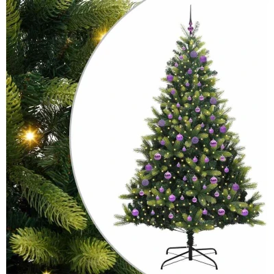 ManoManoGeneral description This Modern Artificial Hinged Christmas Tree embodies holiday warmth and elegance, designed to enhance your festive decor effortlessly. Its lush, green branches are crafted from high-quality PVC and PE materials, ensuring a lifelike appearance that invites the magic of Christmas into your home. Ideal for living rooms, gardens, or terraces, this tree becomes a centerpiece of your holiday gatherings, offering a sleek and modern aesthetic with clean lines and minimal ornamentation. Technical specifications Colour: Green Material: PVC and PE Stand size: 55 x 55 cm Hinged construction Lifelike PE tips: 301 Number of PVC tips: 590 Lights type: LED strip lights Lights color: Warm white Number of LEDs: 300 Power source: USB (not included) Batteries Included: No Indoor / outdoor: Indoor and sheltered outdoor use Assembly required: Yes EAN: 8721288989574 SKU: 3395997 Included Components 1x Artificial Christmas tree 1x Stand 1x LED string light 1x Peak 40x 3 cm ball 40x 4 cm
