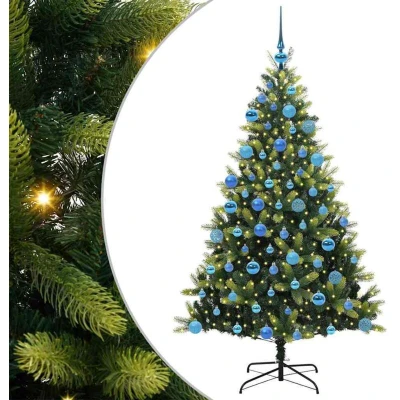 ManoManoGeneral description This Modern Artificial Hinged Christmas Tree embodies holiday warmth and elegance, designed to enhance your festive decor effortlessly. Its lush, green branches are crafted from high-quality PVC and PE materials, ensuring a lifelike appearance that invites the magic of Christmas into your home. Ideal for living rooms, gardens, or terraces, this tree becomes a centerpiece of your holiday gatherings, offering a sleek and modern aesthetic with clean lines and minimal ornamentation. Technical specifications Colour: Green Material: PVC and PE Stand size: 55 x 55 cm Hinged construction Lifelike PE tips: 301 PVC tips: 590 Number of LEDs: 300 Power source: USB (DC 5V) Batteries Included: No Indoor / outdoor: Indoor and sheltered outdoor use Assembly required: Yes Included Components 1x Artificial Christmas tree 1x Stand 1x LED strip light 1x Peak 40x 3 cm ball 40x 4 cm ball 40x 6 cm ball Care & Maintenance Easy to maintain: dust gently and avoid harsh cleaning agents.