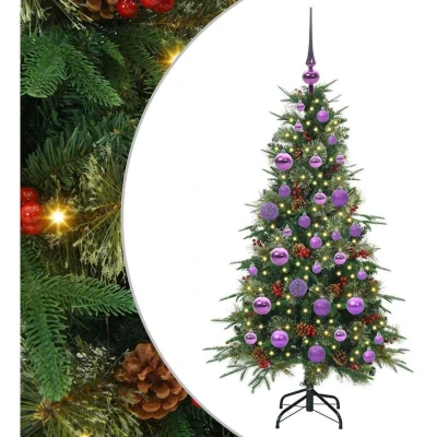 ManoManoGeneral description This modern Christmas tree decoration features a unique cone-shaped design, ideal for enhancing the festive atmosphere in any room or outdoor space. Crafted with PVC and PE materials, this piece offers a fade-resistant surface that ensures lasting appeal throughout the season. Equipped with warm white LED decorative string lights, it brings an elegant sparkle to your space, creating a cozy, inviting ambiance that transforms any setting into a festive retreat. Technical specifications Colour: Green Material: PE and PVC Tree height: 120 cm Bottom diameter: 60 cm Stand size: 30 cm Number of PE tips: 43 Number of PVC tips: 196 Number of needle tips: 42 Number of pine cones: 30 Number of red berries: 30 Number of baubles: 61 Lights type: Decorative string lights Lights color: Warm white Lights length: 3000 cm Number of LEDs: 150 Distance between LEDs: 10 cm LED flash modes: 8 Power source: USB Batteries Included: No Voltage: 5 V Indoor / outdoor: Indoor and sheltered