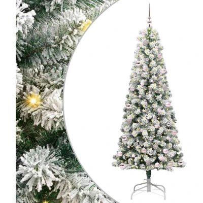 vidaXL Artificial Hinged Christmas Tree Green and white 240 cm PVC