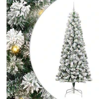 vidaXL Artificial Hinged Christmas Tree Green and white 240 cm PVC