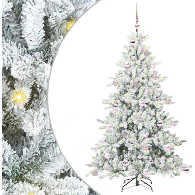 ManoManoGeneral description This elegant artificial hinged Christmas tree is a hallmark of festive cheer, designed to bring warmth and brightness into your living space. With a modern style accentuated by a cone-shaped silhouette, this decorative piece captures timeless beauty and functionality. Intended for those who seek both ease and aesthetics, it is ideal for family rooms, adding a touch of holiday spirit with minimal hassle. Embellished with warm white LED lights, it shines splendidly, creating an inviting atmosphere throughout the festive season. Technical specifications Material: PVC Tree height: 180 cm Bottom diameter: 116 cm Stand size: 45 cm Number of PVC tips: 766 Number of baubles: 120 Lights type: Decorative string lights Lights color: Warm white Lights length: 3000 cm Number of LEDs: 300 LED flash modes: 8 Power source: USB (5V) Cable length: 200 cm Indoor use only Assembly required: Yes Delivery contains: 1x Christmas tree, 1x Stand, 1x LED string light, 1x Peak, 40x 3 cm