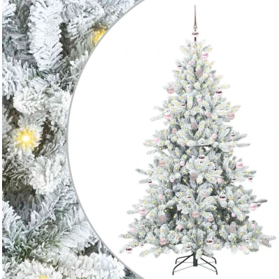 ManoManoGeneral description This elegant artificial hinged Christmas tree is a hallmark of festive cheer, designed to bring warmth and brightness into your living space. With a modern style accentuated by a cone-shaped silhouette, this decorative piece captures timeless beauty and functionality. Intended for those who seek both ease and aesthetics, it is ideal for family rooms, adding a touch of holiday spirit with minimal hassle. Embellished with warm white LED lights, it shines splendidly, creating an inviting atmosphere throughout the festive season. Technical specifications Material: PVC Tree height: 210 cm Bottom diameter: 130 cm Stand size: 50 cm Number of PVC tips: 1078 Number of baubles: 120 Lights type: Decorative string lights Lights color: Warm white Lights length: 3000 cm Number of LEDs: 300 LED flash modes: 8 Power source: USB (not included) Voltage: 5 V Cable length: 200 cm Indoor / outdoor: Indoor use only Assembly required: Yes EAN: 8721288286932 SKU: 3397733 Brand: vidaXL