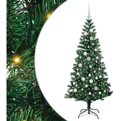 ManoManoGeneral description This Artificial Pre-lit Christmas Tree offers a modern seasonal décor solution for any occasion. Its elegant cone shape and versatile green color seamlessly fit into living rooms, gardens, or terraces, providing an eye-catching focal point without overwhelming the setting. Ideal for those who appreciate contemporary style, this thoughtfully designed product ensures ease of setup with its built-in LED lighting, enhancing its decorative appeal. Technical specifications Colour: Green Material: PVC and metal Tree height: 150 cm Bottom diameter: 80 cm Stand size: 35 x 35 cm Number of PVC tips: 380 Number of baubles: 61 Number of LEDs: 150 Distance between LEDs: 10 cm Voltage: 5 V Wattage: 5 W Indoor / outdoor: Indoor and sheltered outdoor use Assembly required: Yes Compatibility and accessories Power source: Plug (USB power source not included) Delivery contains: 1 x Christmas tree, 1 x Stand, 1 x LED string light, 1 x Peak, 20 x 3 cm ball, 21 x 4 cm ball, 20 x 6 cm