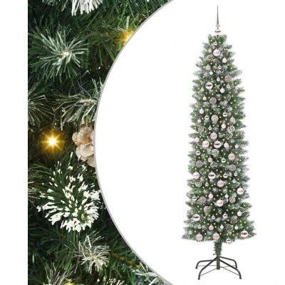 vidaXL Artificial Slim Christmas Tree Green and white 210 cm