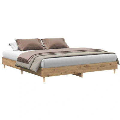 vidaXL Artisan Oak Double Bed Frame 200x200 cm Engineered Wood Slatted Base Modern Bedroom Furniture