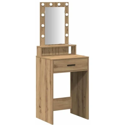 ManoManoGeneral description This modern dressing table blends style and function effortlessly—ideal for any contemporary bedroom. Made from top-notch engineered wood, it has a sleek and polished vibe, sturdy enough for today’s urban living. With its modern design, it fits right in with minimalist spaces while providing both elegance and practicality. Technical specifications Colour: Brown Material: Engineered wood Overall dimensions: 50 x 41 x 140 cm (L x W x H) Weight: 18.05 kg Lights type: LED strip lights With plane mirror Indoor use only Assembly required: Yes EAN: 8721158851901 SKU: 865162 Brand: vidaXL Usage Integrated LED strip lights for makeup and grooming. Convenient storage drawers for cosmetics and accessories. Practical plane mirror for a true reflection. Functional D-Pull handles for easy access to drawers. Other information Please note to use only certified DC 5V input. Higher voltage may cause overheating and damage to the device. Do not connect this product to any power