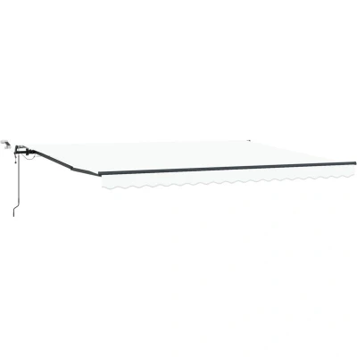 ManoManoGeneral description This retractable awning combines style and practicality, making it an ideal addition to your outdoor balcony. With its sleek design and trendy striped pattern, it enhances your space while providing a cool retreat on sunny days. Designed for outdoor use, it allows you to relax without the harsh sun beating down on you. The included remote control makes adjusting the awning effortless, ensuring a comfortable outdoor experience. Technical specifications Colour: White Material: Fabric Overall dimensions: 450 x 300 cm (L x W) Retractable: Yes Operating mechanism: Remote Control Assembly required: Yes Included components: 1 x Awning fabric, 1 x Awning frame, 1 x Remote control EAN: 8721158813497 SKU: 3330990 Care & Maintenance Wipe the fabric with a damp cloth periodically to remove dust. This simple maintenance helps prolong the awning's lifespan and keeps it looking great. Other information Warning: Strong spring when opens. DO NOT remove this rope unless you have