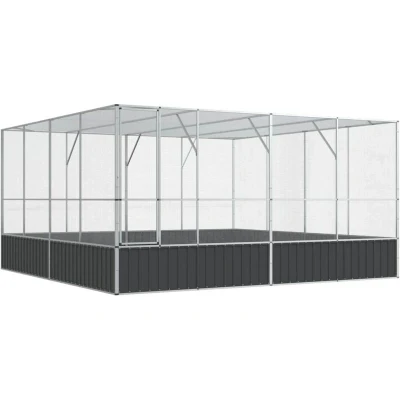 ManoManoGeneral description This aviary provides a cozy and comfortable place for your birds to fly and play safely. It is designed with a sturdy frame made of galvanized steel, ensuring durability and protection against corrosion, making it suitable for outdoor use as well as in harsh environments. Technical specifications Colour: Silver and anthracite Material: Galvanized steel, steel Dimensions: 418 x 414 x 212 cm (W x D x H) Door size: 48.5 x 152.5 cm (W x H) Grid size: 1 x 1 cm (L x W) Mesh size: 12.7 x 12.7 mm Assembly required: Yes SKU: 172588 Usage Provides ample activity room for birds to walk, play, and fly. Suitable for small animals such as rabbits, ducks, chickens, and geese. Features a lockable hinged door for extra security. Other information Warning! Must wear protective gloves.
