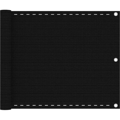 General description With this HDPE balcony screen, you can enjoy privacy while relaxing or sunbathing on your balcony. This balcony shade is made from high-density polyethylene (HDPE), which is mould and UV proof. The special "open" fabric structure allows wind to pass through, ensuring a fresh breeze on your balcony. Technical specifications Colour: Black Material: 100% HDPE (high-density polyethylene) Size: 75 x 500 cm (L x W) Fabric density: 160 g/m² Wind and water permeable Mould and UV proof Breathable HDPE Aluminium eyelets 24 m PE rope included Assembly required: No Installation The shield can be easily attached to the balcony using its aluminium eyelets and the included rope. Other information