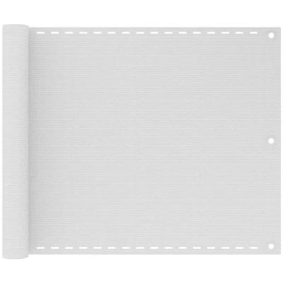 General description With this HDPE balcony screen, you can enjoy privacy while relaxing or sunbathing on your balcony. Made from high-density polyethylene (HDPE), this balcony shade is mould and UV proof. The special "open" fabric structure allows wind to pass through, ensuring a fresh breeze on your balcony. The screen can be easily attached using its aluminium eyelets and the included rope. Technical specifications Colour: White Material: 100% HDPE (high-density polyethylene) Size: 75 x 500 cm (L x W) Fabric density: 160 g/m² Wind and water permeable Mould and UV proof Breathable HDPE Aluminium eyelets 24 m PE rope included Assembly required: No Other information