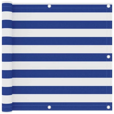 General description This waterproof balcony screen allows you to enjoy privacy while relaxing or sunbathing on your balcony. Made from a special PU coated oxford fabric, it is both wind and waterproof, ensuring durability and protection from the elements. Technical specifications Colour: White and blue Material: PU coated oxford fabric Size: 90 x 400 cm (L x W) Waterproof UV protective Aluminium eyelets 12 m PE rope included Assembly required: No Other information