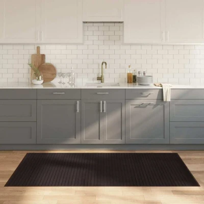 ManoManoGeneral description This modern bamboo rug in dark brown will enhance the natural look of your living room and complement any decor. Its durable and long-lasting properties make it an excellent choice for home improvement. Technical specifications Colour: Dark brown Material: Bamboo, PP (polypropylene) Size: 100 x 200 cm (W x L) Other information The wood/bamboo is a natural product and can show imperfections. Due to the natural material, the width of bamboo slats may vary by +/- 1 mm.