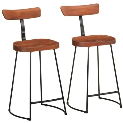 ManoManoGeneral description These bar stools featuring a modern design are a practical addition to your home interior. Made from solid mango wood, known for its exceptional durability and beautiful wood grains, each piece is unique. The sturdy metal legs provide long-lasting stability, making these stools reliable for daily use. Designed for comfort, they include a supportive backrest and an integrated footstool, ensuring a pleasant seating experience. Technical specifications Material: Solid mango wood, iron Dimensions: 49 x 43 x 88 cm (W x D x H) Maximum weight capacity (per seat): 110 kg Colour: Brown and black Delivery contains: 2 x Bar stool Other information Each item is unique with variations in colours and grains, ensuring the exclusivity of your product.