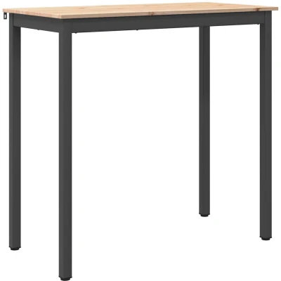 ManoManoThis modern bar table, characterized by its clean lines and understated elegance, is perfect for enhancing the ambiance of both dining rooms and kitchens. The sleek surface embodies simplicity while offering functionality for everyday use, creating a contemporary yet warm environment suitable for both family meals and entertaining guests. Standing on a robust metal structure, the table merges an industrial flair with homey comfort, making it a fitting centerpiece for those who appreciate minimal yet stylish designs. Solid Pine Wood Surface The table's surface is crafted from premium solid pine wood, known for its rich texture and durability. This material choice not only adds a natural beauty but also ensures that the table withstands the rigors of daily use while maintaining its elegant appearance over time. The natural grain patterns add warmth and character, making each piece unique. Modern Metal Legs Fitted with square metal legs, the table boasts a modern, minimalist aesthetic