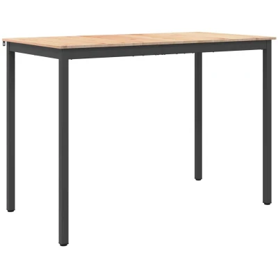 ManoManoThis modern bar table, characterized by its clean lines and understated elegance, is perfect for enhancing the ambiance of both dining rooms and kitchens. The sleek surface embodies simplicity while offering functionality for everyday use, creating a contemporary yet warm environment suitable for both family meals and entertaining guests. Standing on a robust metal structure, the table merges an industrial flair with homey comfort, making it a fitting centerpiece for those who appreciate minimal yet stylish designs. Solid Pine Wood Surface The table's surface is crafted from premium solid pine wood, known for its rich texture and durability. This material choice not only adds a natural beauty but also ensures that the table withstands the rigors of daily use while maintaining its elegant appearance over time. The natural grain patterns add warmth and character, making each piece unique. Modern Metal Legs Fitted with square metal legs, the table boasts a modern, minimalist aesthetic