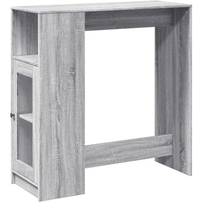 vidaXL Bar Table with Racks Grey Sonoma Wood, 101x40x103.5 cm, 3 Storage Compartments Kitchen/Living Room/Dining Area Pub Bistro Furniture
