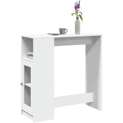 vidaXL Bar Table with Racks White Engineered Wood Rectangular Counter Bistro 101x40x103.5 cm 70 kg Load Capacity 3 Storage Compartments for Kitchen, Living Room, or Dining Area