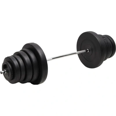 General description This versatile barbell with plates set is a perfect choice for those looking for varied workout options. Made of chrome plated steel, the barbell is sturdy and stable. The barbell plates are made of cement and covered with robust, floor-friendly plastic, minimizing annoying clanging sounds during workouts. The multifunctional barbell set is suitable for training your chest, biceps, arms, triceps, and back muscles. Technical specifications Total weight: 90 kg Barbell bar weight: 2 kg Barbell bar dimensions: 25 mm x 140 cm (Diameter x Length) Bar maximum load capacity (140 cm): 60 kg Plate weight distribution: 4 x 5 kg, 2 x 7.5 kg, 2 x 1.25 kg, 2 x 15 kg, 2 x 10 kg Diameter of plates: 15 kg - 39 cm, 10 kg - 31 cm, 7.5 kg - 30 cm, 5 kg - 26 cm, 1.25 kg - 18 cm Hole diameter: 26.5 mm Installation Each product comes with an assembly manual in the box for easy assembly. Usage Suitable for training various muscle groups including chest, biceps, arms, triceps, and back.