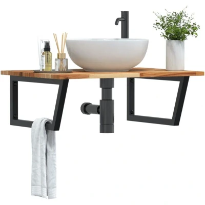 vidaXL Basin Shelf Wall Mounted Steel and Solid Wood Acacia