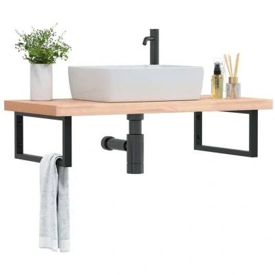 vidaXL Basin Shelf Wall Mounted Steel and Solid Wood Beech