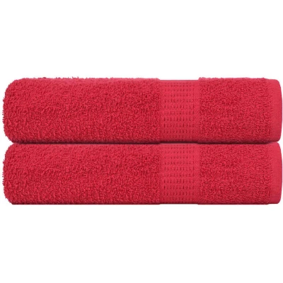ManoManoGeneral description These bath towels are ideal for both domestic and commercial use. Made from 100% ring-spun cotton, they are soft, durable, and fade-resistant. The towels are designed to be absorbent, soaking up more water effectively, making them perfect for various needs, including beauty treatments and everyday cleaning tasks. Technical specifications Colour: Red Material: 100% cotton Size: 100 x 150 cm (W x L) Weight: 360 gsm Certified by STANDARD 100 by OEKO-TEX Machine washable Delivery contains: 2 x Bath towel SKU: 136932 Other information
