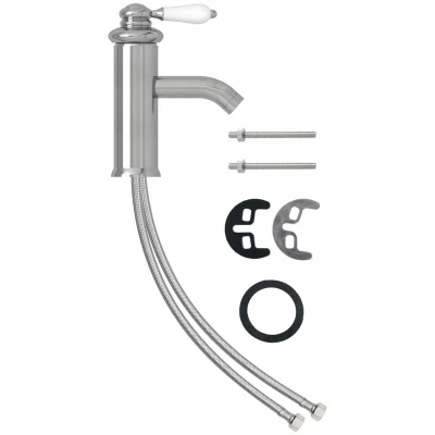 General description A good basin tap is essential in every bathroom. From washing hands to brushing teeth and shaving, the handy premium bathroom basin faucet is perfect for your bathroom. The solid brass construction and metal handle make this sink tap durable and sturdy. This tap features a flexible stainless steel design of the connection hose, making it suitable for most sinks. It can be easily connected to all basic cold and hot water pressure systems. Technical specifications Colour: Silver Material: Zinc, brass Dimensions: 130 x 180 mm (W x H) 40 mm cartridge G 3/8” 40 cm stainless steel flexible hose Includes stainless steel fixing kit Suitable for both cold and hot water Suitable for regular residential water pressure Assembly required: Yes Usage The faucet needs to be cleaned regularly to maintain its appearance. Failure to clean may lead to corrosion of the plating layer. Other information