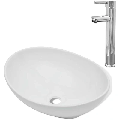 vidaXL Bathroom Basin with Mixer Tap Ceramic Oval White
